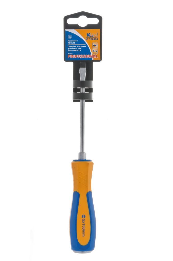 Шлицевая отвертка ТМ Kraft применяется для откручивания и закручивания крепежа, рабочий профиль которого выполнен в виде прямого шлица. Это прочный и надёжный инструмент для удобной работы. Стержень выполнен из хромванадиевой стали - не стачивается и не ломается. Рукоятка - двухкомпонентная, из твердого и полумягкого пластика, устойчивого к агрессивному химическому воздействию.